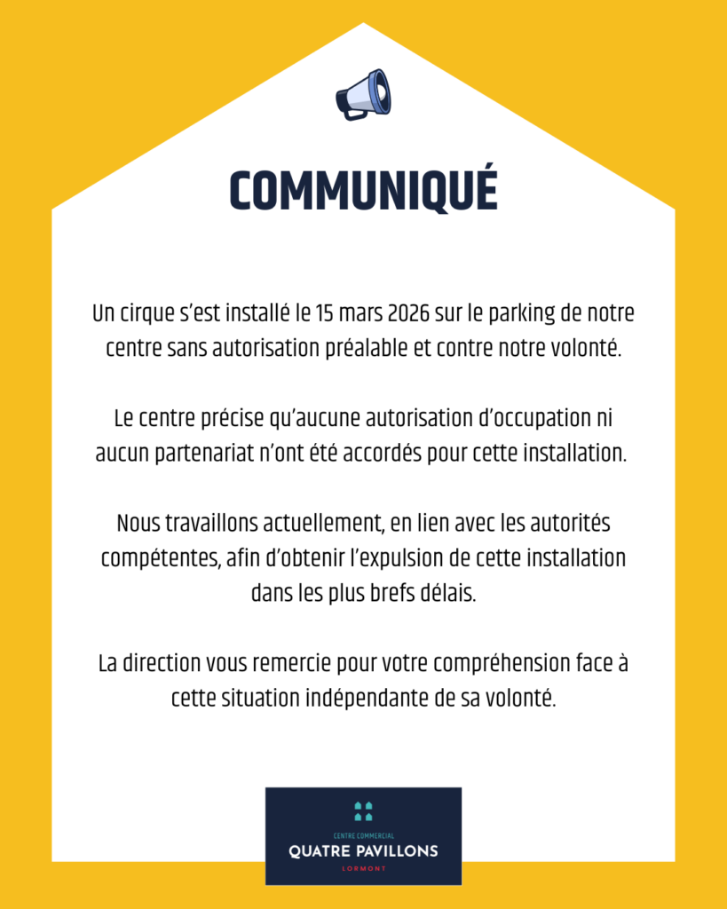 Un cirque s’est installé le 15 mars 2026 sur le parking de notre centre sans autorisation préalable et contre notre volonté.